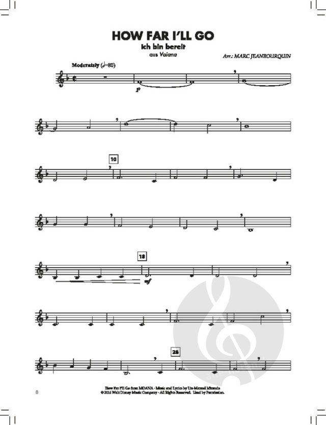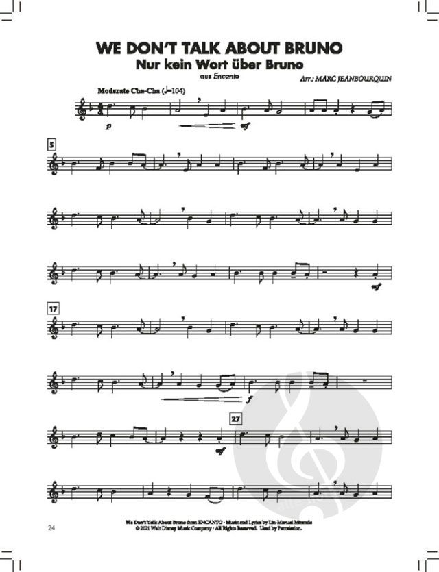 Nach dem großen Erfolg von BläserKlasse Chart-Hits hat sich der Schweizer Arrangeur Marc Jeanbourquin die Soundtracks zu den großen Kinoerfolgen der letzten Jahre aus dem Hause Walt Disney vorgenommen und daraus die schönsten Melodien arrangiert. Die Auswahl umfasst die jüngsten Disney-Animationsfilme von Vayana über Die Eiskönigin II bis Encanto wie auch die Realfilm-Remakes etwa von Die Schöne und das Biest, Aladdin und natürlich Der König der Löwen. Wie aus dem Hause De Haske gewohnt, sind die Arrangements genau auf den Lernfortschritt von Band 1 und 2 der Bläserklassenmethode ESSENTIAL ELEMENTS abgestimmt, stellen aber auch unabhängig davon eine äußerst attraktive Repertoireergänzung für Nachwuchs-Blasorchester dar. Film ab!