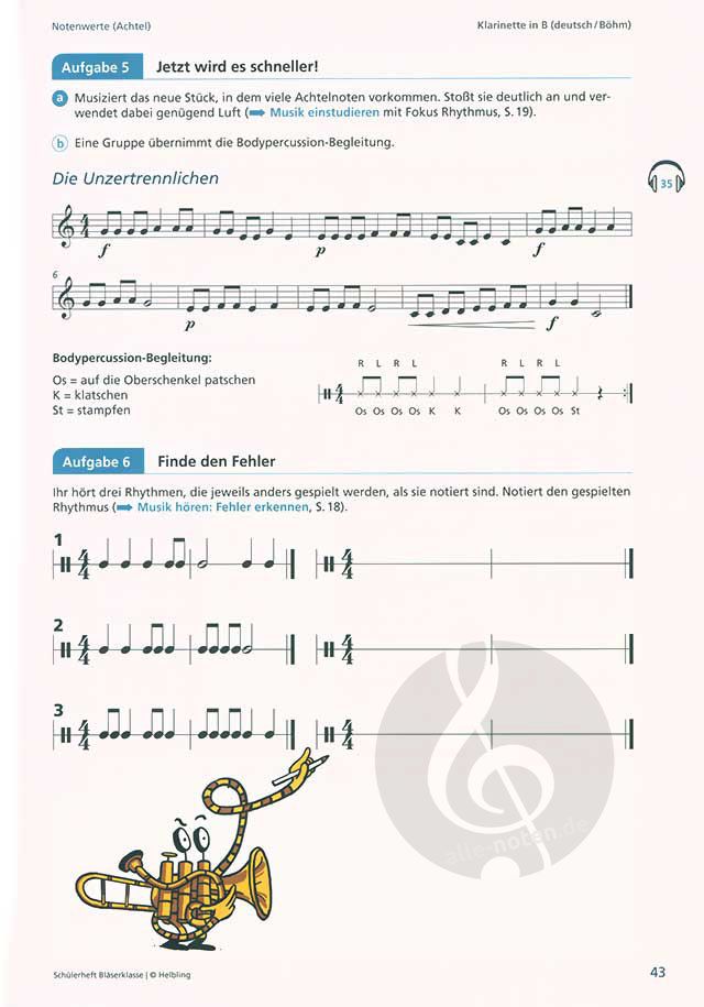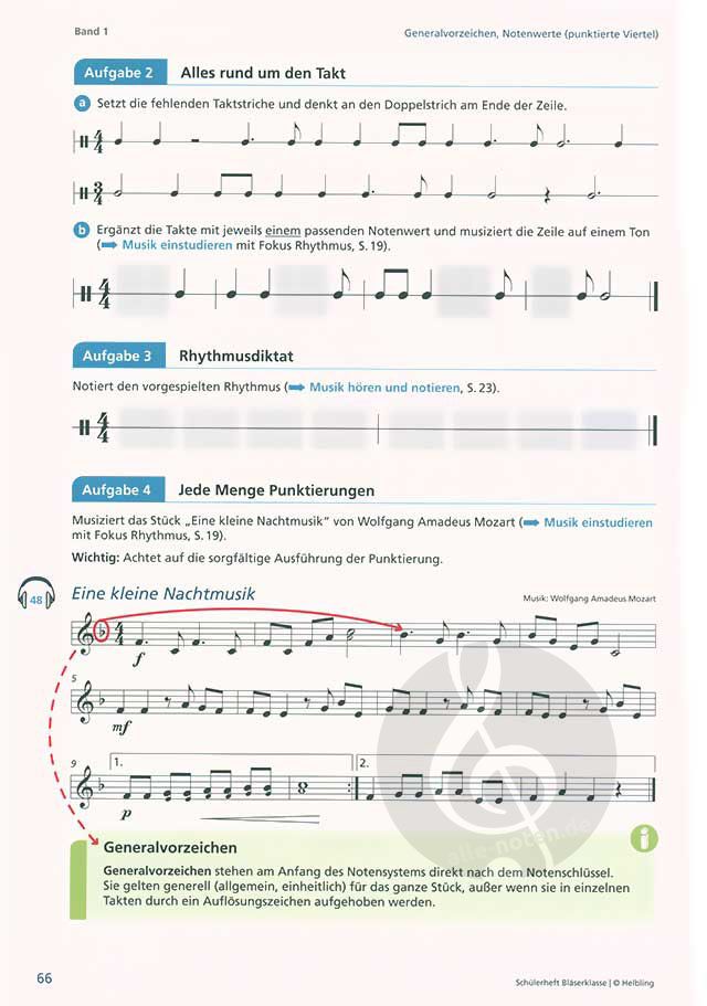 Die Schülerhefte enthalten das didaktisch aufbereitete Material eingeteilt in Lektionen, die durch das gesamte Schuljahr führen. Hier findet sich nicht nur das binnendifferenzierte Notenmaterial für jedes Instrument in Transposition und Lage sondern auch vielfältige und handlungsorientierte Aufgabenstellungen zu Hör- und Rhythmusschulung, Improvisation, Musiklehre u.v.m. Daneben sorgen motivierende, das Thema vertiefende Spielideen für eine Auflockerung des Unterrichts und Spaß am gemeinsamen Musizieren. Die grafisch ansprechend aufbereiteten Seiten machen das Lernen in der Bläserklasse zu einem Vergnügen!