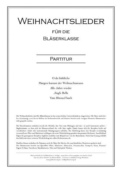 Die Sätze sind drei- bis vierstimmig gehalten und für Bläserklassen in den ersten beiden Unterrichtsjahren eingerichtet. 'Morgen kommt der Weihnachtsmann' und 'Jingle Bells' umfassen nur den Sechstonbereich und sind bereits nach wenigen Monaten Unterricht spielbar.
