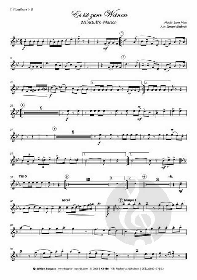 Partitur, 1. Trompete in B, 2. Trompete in B, 3. Trompete in B, Tenorhorn in B, Bariton in C, Bariton in B, Tuba in C, Schlagzeug