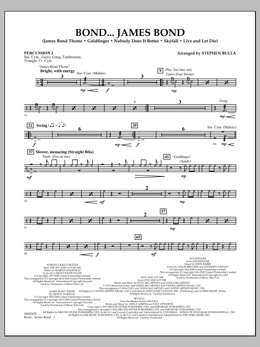 In den letzten fünf Jahrzehnten ist die Musik aus der James-Bond-Filmreihe zu einem Teil unserer Musikkultur geworden. Diese kraftvolle Vertonung bekannter Filmthemen wird alle Zuhörer ansprechen.