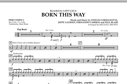 Continuing her amazing string of chart-topping hits, here is a solid arrangement of Lady Gaga's latest single to sweep the pop scene. With its driving style and '80s influence, this one adapts nicely for band.
