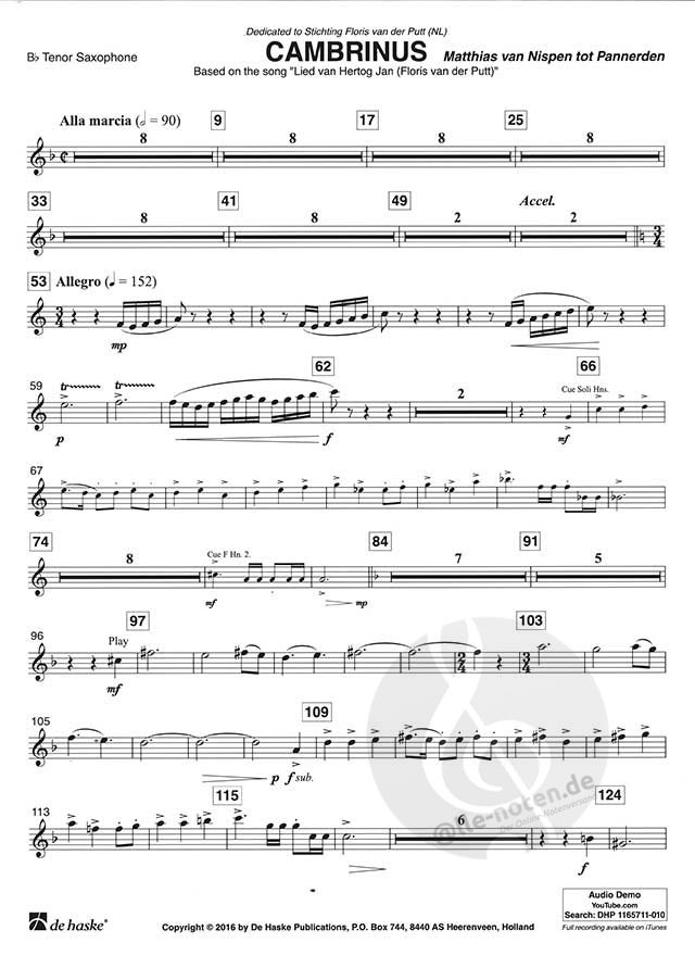 Der Name 'Cambrinus', eine Verballhornung von 'Jan Primus' (Johann I.), bezieht sich auf den extravaganten Johann I. von Brabant, der in der zweiten Hälfte des 13. Jahrhunderts Herzog der holländischen Provinzen Brabant und Limburg war. Das Musikstück erzählt die Geschichte dieses bedeutenden Mannes und beginnt mit der Schlacht von Worringen im Jahr 1288, bei der er einen glorreichen Sieg davontrug. Bei dem rauschenden Fest nach diesem Triumph soll er aber auch über das Leid nachgedacht haben, das seine Soldaten und er verursacht haben. Dieses Werk bietet spannende und energiegeladene musikalische Szenen mit großer Wirkung, aber auch wunderschöne romantische und heroische Themen, bei denen das Orchester all seine Qualitäten entfalten kann.