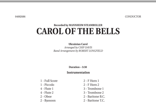 Die Mannheim Steamroller-Version von Carol of the Bells drückt einem Weihnachtsklassiker ihren einzigartigen und unverwechselbaren Stempel auf. Diese Vertonung zeichnet sich durch einen treibenden rhythmischen Puls, ein kurzes Trompetensolo und eine kreative Orchestrierung aus.