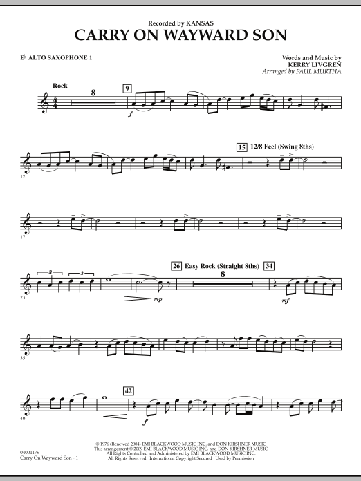 Dieser Mega-Hit wurde 1977 von der Gruppe Kansas aufgenommen und trug dazu bei, ein Genre progressiver Rockhymnen mit mehreren Abschnitten und Stilen zu definieren. Die unverwechselbaren charakteristischen Riffs und schwungvollen Melodien lassen sich in diesem Konzertarrangement für Band gut umsetzen.