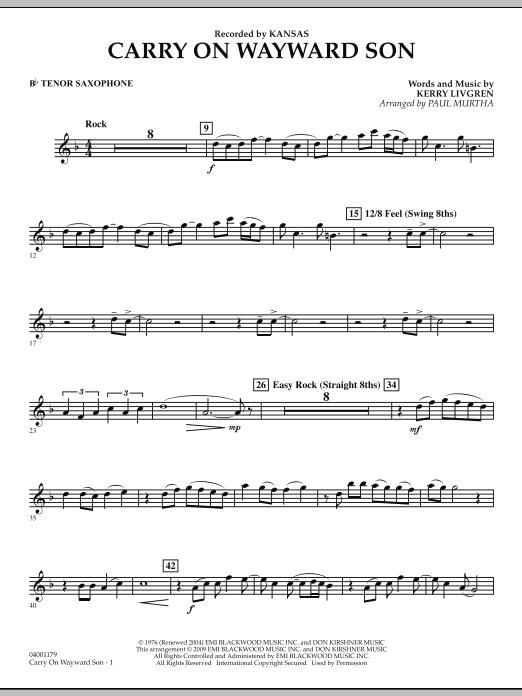 Dieser Mega-Hit wurde 1977 von der Gruppe Kansas aufgenommen und trug dazu bei, ein Genre progressiver Rockhymnen mit mehreren Abschnitten und Stilen zu definieren. Die unverwechselbaren charakteristischen Riffs und schwungvollen Melodien lassen sich in diesem Konzertarrangement für Band gut umsetzen.