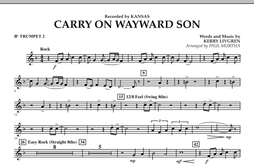 Dieser Mega-Hit wurde 1977 von der Gruppe Kansas aufgenommen und trug dazu bei, ein Genre progressiver Rockhymnen mit mehreren Abschnitten und Stilen zu definieren. Die unverwechselbaren charakteristischen Riffs und schwungvollen Melodien lassen sich in diesem Konzertarrangement für Band gut umsetzen.