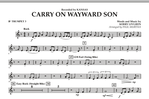Dieser Mega-Hit wurde 1977 von der Gruppe Kansas aufgenommen und trug dazu bei, ein Genre progressiver Rockhymnen mit mehreren Abschnitten und Stilen zu definieren. Die unverwechselbaren charakteristischen Riffs und schwungvollen Melodien lassen sich in diesem Konzertarrangement für Band gut umsetzen.