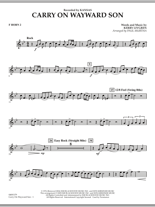 Dieser Mega-Hit wurde 1977 von der Gruppe Kansas aufgenommen und trug dazu bei, ein Genre progressiver Rockhymnen mit mehreren Abschnitten und Stilen zu definieren. Die unverwechselbaren charakteristischen Riffs und schwungvollen Melodien lassen sich in diesem Konzertarrangement für Band gut umsetzen.