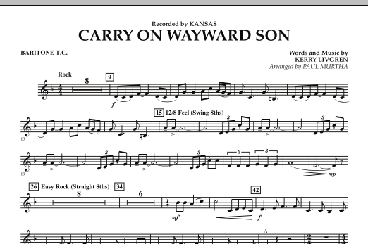 Dieser Mega-Hit wurde 1977 von der Gruppe Kansas aufgenommen und trug dazu bei, ein Genre progressiver Rockhymnen mit mehreren Abschnitten und Stilen zu definieren. Die unverwechselbaren charakteristischen Riffs und schwungvollen Melodien lassen sich in diesem Konzertarrangement für Band gut umsetzen.