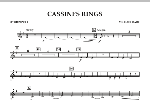 In 2004, NASA's Cassini spacecraft (named for astronomer Giovanni Domenico Cassini) entered into orbit around the planet Saturn. The famous rings are named for the first seven letters of the alphabet, and in order of their distance from the planet form a melodic tone row used as the basis for this creative and exciting work for beginning players.