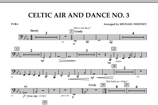 Continuing with Michael's popular series of Celtic Air and Dance arrangements, the third installment opens with Red is the Rose (or Loch Lomond) in a flowing ballad treatment. The lively Bill Sullivan's Polka follows and features various sections of the band. The flutes start things off followed by the rest of the woodwinds, trumpets, percussion, low brass and finally the entire ensemble in an energetic finish. Dur: 3:10