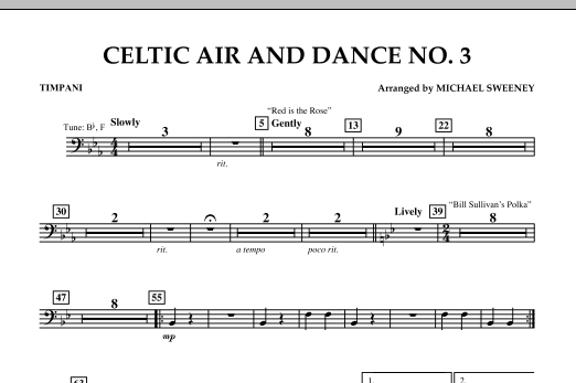 Continuing with Michael's popular series of Celtic Air and Dance arrangements, the third installment opens with Red is the Rose (or Loch Lomond) in a flowing ballad treatment. The lively Bill Sullivan's Polka follows and features various sections of the band. The flutes start things off followed by the rest of the woodwinds, trumpets, percussion, low brass and finally the entire ensemble in an energetic finish. Dur: 3:10
