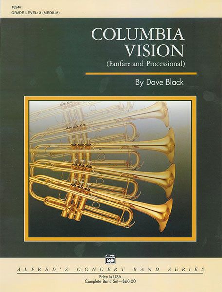 Whether programmed for a ceremony or just the opening of your next concert, Columbia Vision will be sure to steal the show! Commissioned by the Columbia Concert Band, Columbia, Maryland, it opens with a dramatic fanfare in the brass. A stately processional follows, conjuring up images of ceremonial grandeur. After the return of the fanfare, Columbia Vision concludes with unrelenting energy and drive utilizing the syncopated rhythms and rich harmonies often found in the composer's music. Another exciting original work from the pen of Dave Black!