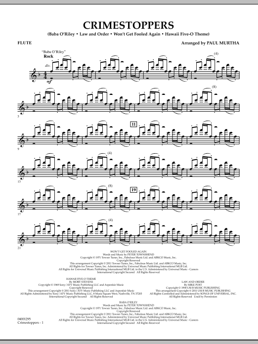 Television series involving crime have become a part of our culture, and so have the themes associated with these popular shows. Here is medley of some of the best! Includes: Law and Order, Baba O'Riley (CSI-New York), Won't Get Fooled Again (CSI-Miami), and Hawaii 5-O Theme.