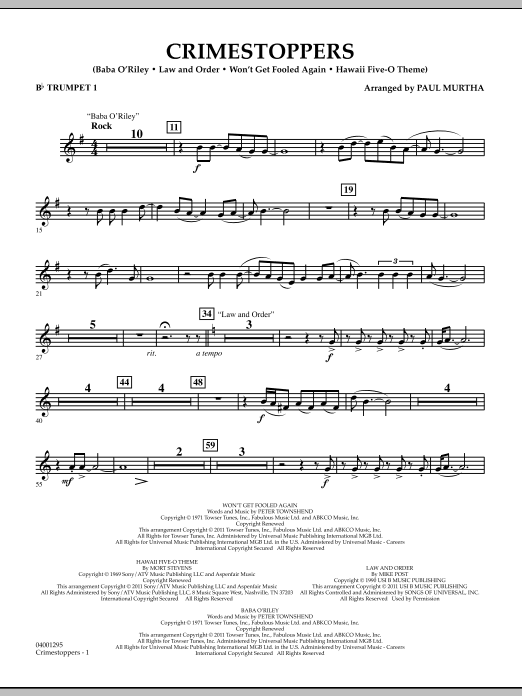 Television series involving crime have become a part of our culture, and so have the themes associated with these popular shows. Here is medley of some of the best! Includes: Law and Order, Baba O'Riley (CSI-New York), Won't Get Fooled Again (CSI-Miami), and Hawaii 5-O Theme.