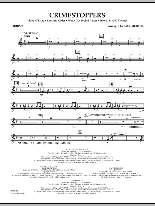 Television series involving crime have become a part of our culture, and so have the themes associated with these popular shows. Here is medley of some of the best! Includes: Law and Order, Baba O'Riley (CSI-New York), Won't Get Fooled Again (CSI-Miami), and Hawaii 5-O Theme.