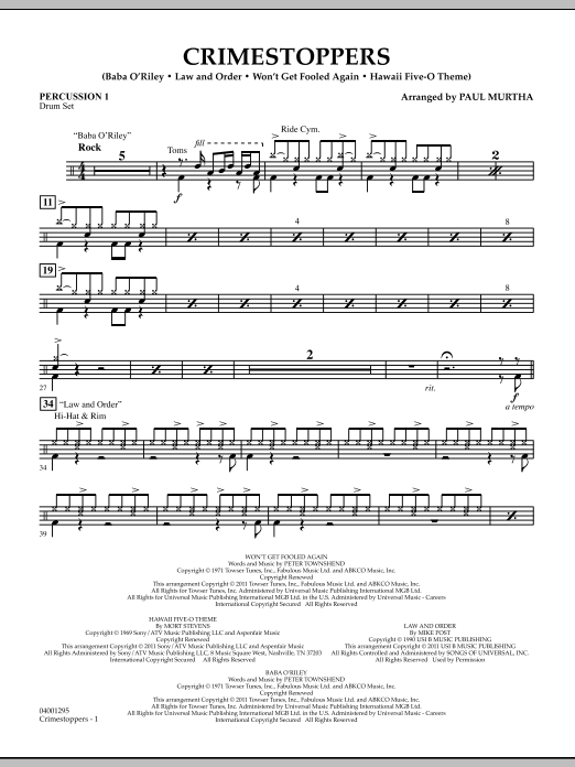 Television series involving crime have become a part of our culture, and so have the themes associated with these popular shows. Here is medley of some of the best! Includes: Law and Order, Baba O'Riley (CSI-New York), Won't Get Fooled Again (CSI-Miami), and Hawaii 5-O Theme.