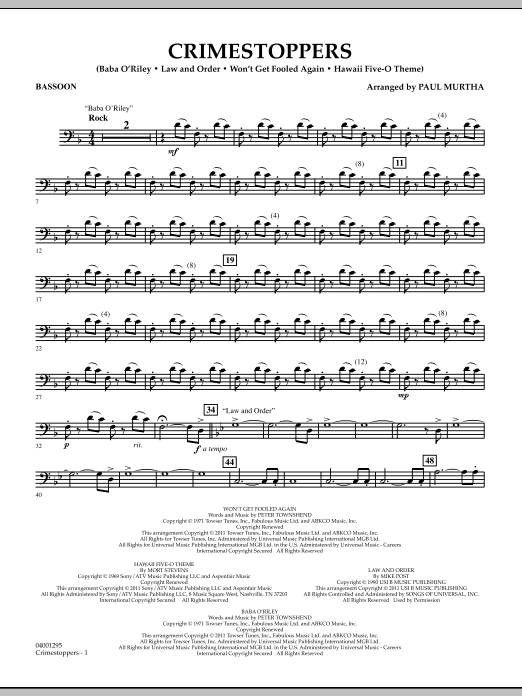 Television series involving crime have become a part of our culture, and so have the themes associated with these popular shows. Here is medley of some of the best! Includes: Law and Order, Baba O'Riley (CSI-New York), Won't Get Fooled Again (CSI-Miami), and Hawaii 5-O Theme.