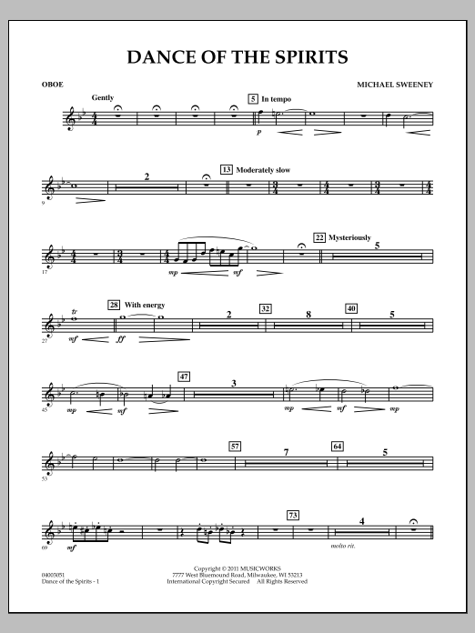 The Native American Cree tribe refer to the aurora borealis (or northern lights) as the dance of the spirits. Using a variety of unusual sounds and effects, quickly changing textures and surprises, Michael Sweeney has created a musical impression of this phenomenon's stunning beauty and unpredictable nature. An exciting and unique addition to the young band repertoire, this will be enjoyable to rehearse and perform. (Grade 2.5).