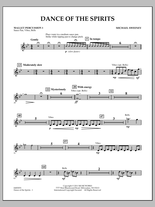 The Native American Cree tribe refer to the aurora borealis (or northern lights) as the dance of the spirits. Using a variety of unusual sounds and effects, quickly changing textures and surprises, Michael Sweeney has created a musical impression of this phenomenon's stunning beauty and unpredictable nature. An exciting and unique addition to the young band repertoire, this will be enjoyable to rehearse and perform. (Grade 2.5).