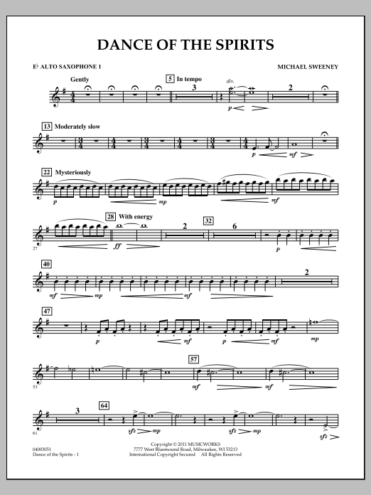 The Native American Cree tribe refer to the aurora borealis (or northern lights) as the dance of the spirits. Using a variety of unusual sounds and effects, quickly changing textures and surprises, Michael Sweeney has created a musical impression of this phenomenon's stunning beauty and unpredictable nature. An exciting and unique addition to the young band repertoire, this will be enjoyable to rehearse and perform. (Grade 2.5).