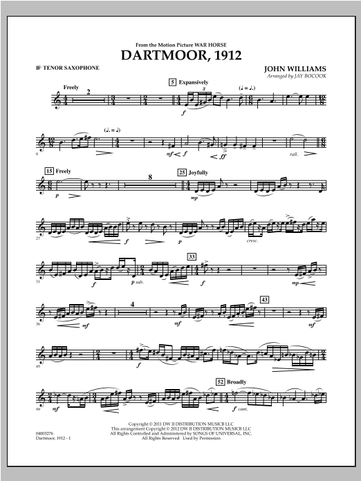The melodic and harmonic genius of John Williams is dramatically displayed in his powerful, yet sensitive film score from Steven Spielberg's War Horse. This symphonic setting for band exemplifies the character and warmth of the score from soloist passages to sweeping full ensemble themes.