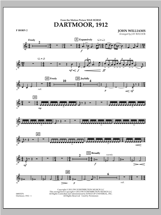 The melodic and harmonic genius of John Williams is dramatically displayed in his powerful, yet sensitive film score from Steven Spielberg's War Horse. This symphonic setting for band exemplifies the character and warmth of the score from soloist passages to sweeping full ensemble themes.