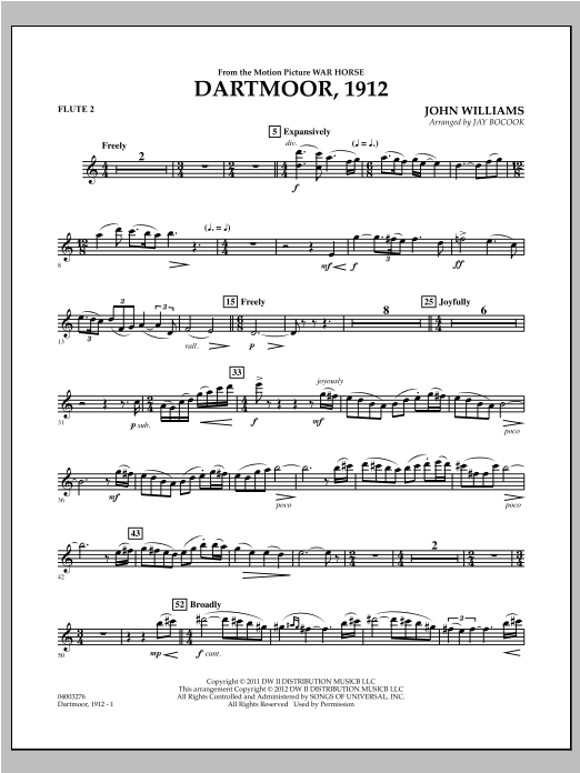 The melodic and harmonic genius of John Williams is dramatically displayed in his powerful, yet sensitive film score from Steven Spielberg's War Horse. This symphonic setting for band exemplifies the character and warmth of the score from soloist passages to sweeping full ensemble themes.
