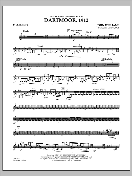 The melodic and harmonic genius of John Williams is dramatically displayed in his powerful, yet sensitive film score from Steven Spielberg's War Horse. This symphonic setting for band exemplifies the character and warmth of the score from soloist passages to sweeping full ensemble themes.