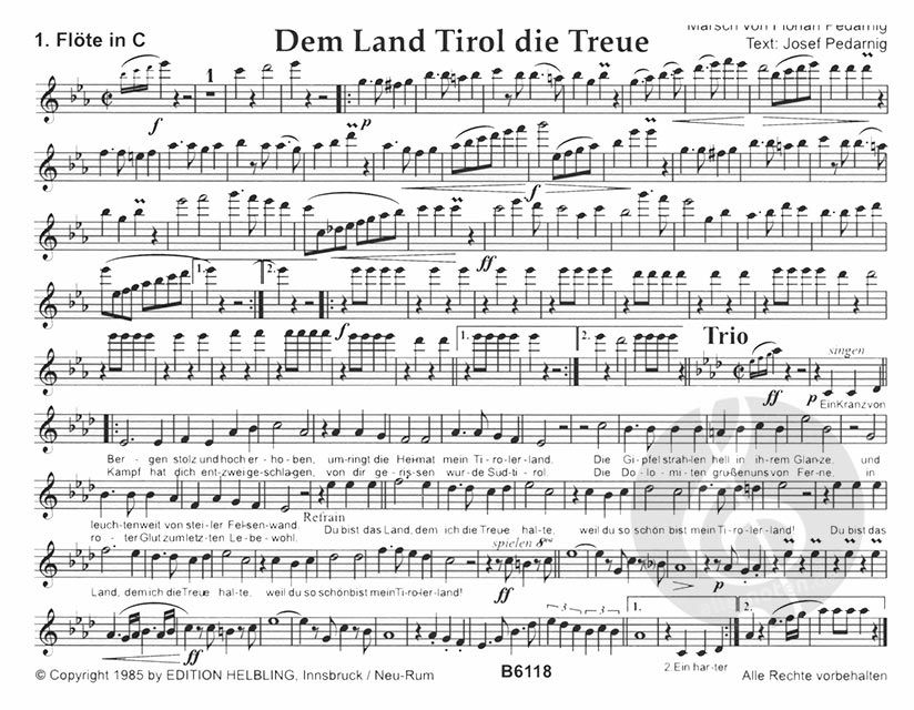 Noten von 'Dem Land Tirol die Treue' von Florian Pedarnig für Blasorchester - Marschformat.
