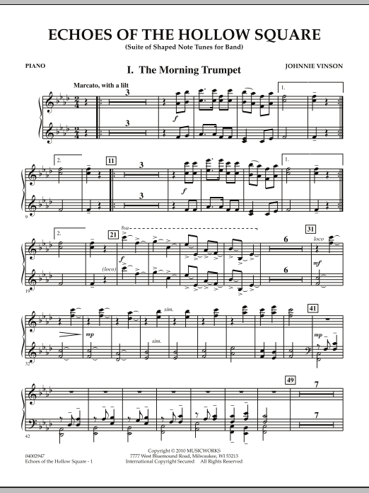 Shaped note singing is an early American tradition handed down from colonial times, and still thrives today thanks in part to the well-known book The Sacred Harp. (Songs from this book were featured in the 2003 motion picture Cold Mountain.) In creating this distinctive and attractive setting for band, Johnnie Vinson uses the following traditional shaped note songs: The Morning Trumpet, Hallelujah, I'm Going Home, and Warrenton.