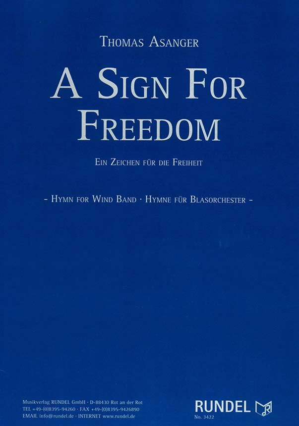 Mit seiner Komposition 'A Sign for Freedom - Ein Zeichen für die Freiheit' (Hymne für Blasorchester) setzt der junge österreichische Komponist Thomas Asanger ein musikalisches Zeichen für Frieden und Freiheit. Die vor allem in Deutschland und Österreich sichtbar gewordene Hilfsbereitschaft für die Flüchtlingsströme aus den verschiedensten Krisengebieten wird gerade in einer Zeit des zunehmenden Rassismus zum Zeichen für mehr Toleranz und Solidarität. 'A Sign for Freedom' steht als Sinnbild dafür, das Gemeinsame vor das Trennende zu stellen und (nationale) Grenzen zu überwinden.