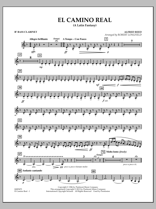 Composed by Alfred Reed in 1986, El Camino Real continues to be a repertoire staple for advanced ensembles. By shortening the duration and reducing the instrumentation and extreme technical demands, Robert Longfield has masterfully adapted this gem into an authentic sounding edition for younger players. A rewarding and distinctive work! Dur: 5:00