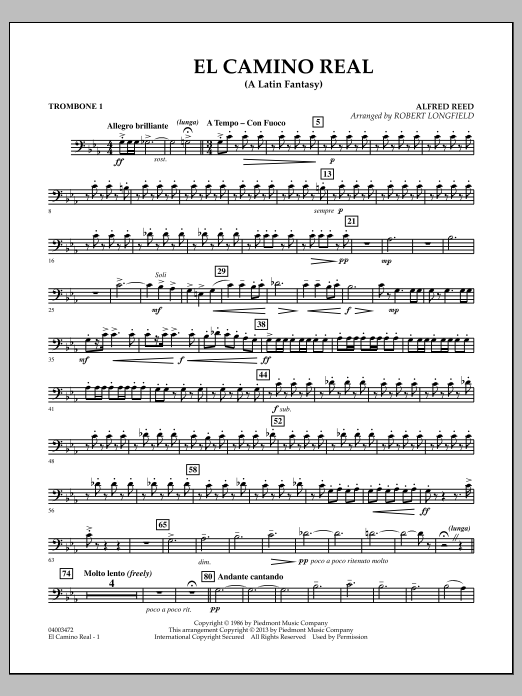 Composed by Alfred Reed in 1986, El Camino Real continues to be a repertoire staple for advanced ensembles. By shortening the duration and reducing the instrumentation and extreme technical demands, Robert Longfield has masterfully adapted this gem into an authentic sounding edition for younger players. A rewarding and distinctive work! Dur: 5:00