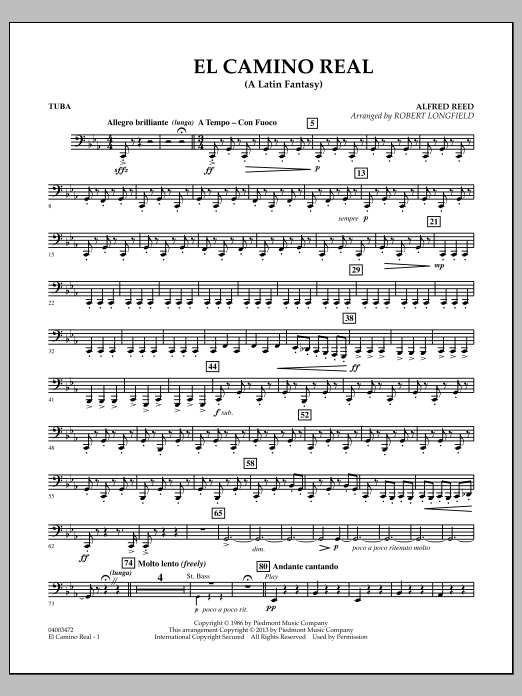 Composed by Alfred Reed in 1986, El Camino Real continues to be a repertoire staple for advanced ensembles. By shortening the duration and reducing the instrumentation and extreme technical demands, Robert Longfield has masterfully adapted this gem into an authentic sounding edition for younger players. A rewarding and distinctive work! Dur: 5:00