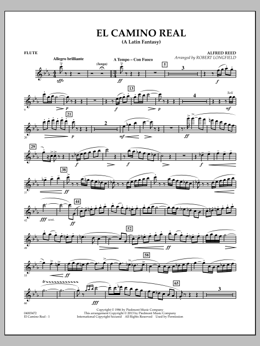 Composed by Alfred Reed in 1986, El Camino Real continues to be a repertoire staple for advanced ensembles. By shortening the duration and reducing the instrumentation and extreme technical demands, Robert Longfield has masterfully adapted this gem into an authentic sounding edition for younger players. A rewarding and distinctive work! Dur: 5:00