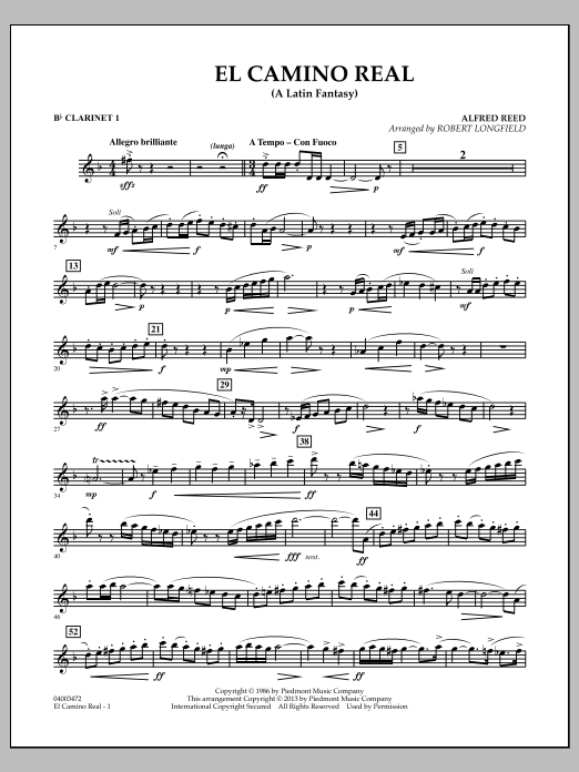 Composed by Alfred Reed in 1986, El Camino Real continues to be a repertoire staple for advanced ensembles. By shortening the duration and reducing the instrumentation and extreme technical demands, Robert Longfield has masterfully adapted this gem into an authentic sounding edition for younger players. A rewarding and distinctive work! Dur: 5:00