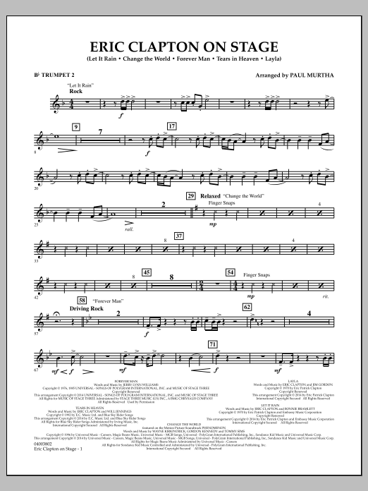 Eric Clapton ist wohl einer der einflussreichsten Gitarristen aller Zeiten mit einer beeindruckenden Hitbilanz. Aus vier Jahrzehnten hat Paul Murtha ein wunderbares Medley für Ihr nächstes Konzert zusammengetragen.