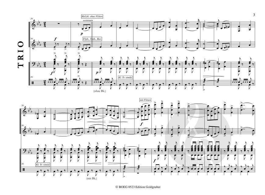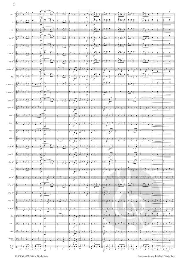 Die eingerichtete Ausgabe für modernes Blasorchester ist eine Erweiterung der originalen Partitur für Militärmusik in der damaligen Besetzung: Piccolo in C, Clarinetti in As und Es, und Clarinetti 1 - 4 in B; Corni 1 - 4 in F; Bombardon u. Helicon; 1. und 2. Flügelhorn in B; Bahsflügel und Euphonion; Piston in Es; Trombi 1 - 5 in Es, und 6. in B; Tromboni 1 - 3; Kl. Trommel und Cassa (siehe Faksimile).Bei den B-Klarinetten notierte Fahrbach die 2. und 4. Klarinette meist cola parte (gleichklingend) mit 1. und 3. Klarinette.