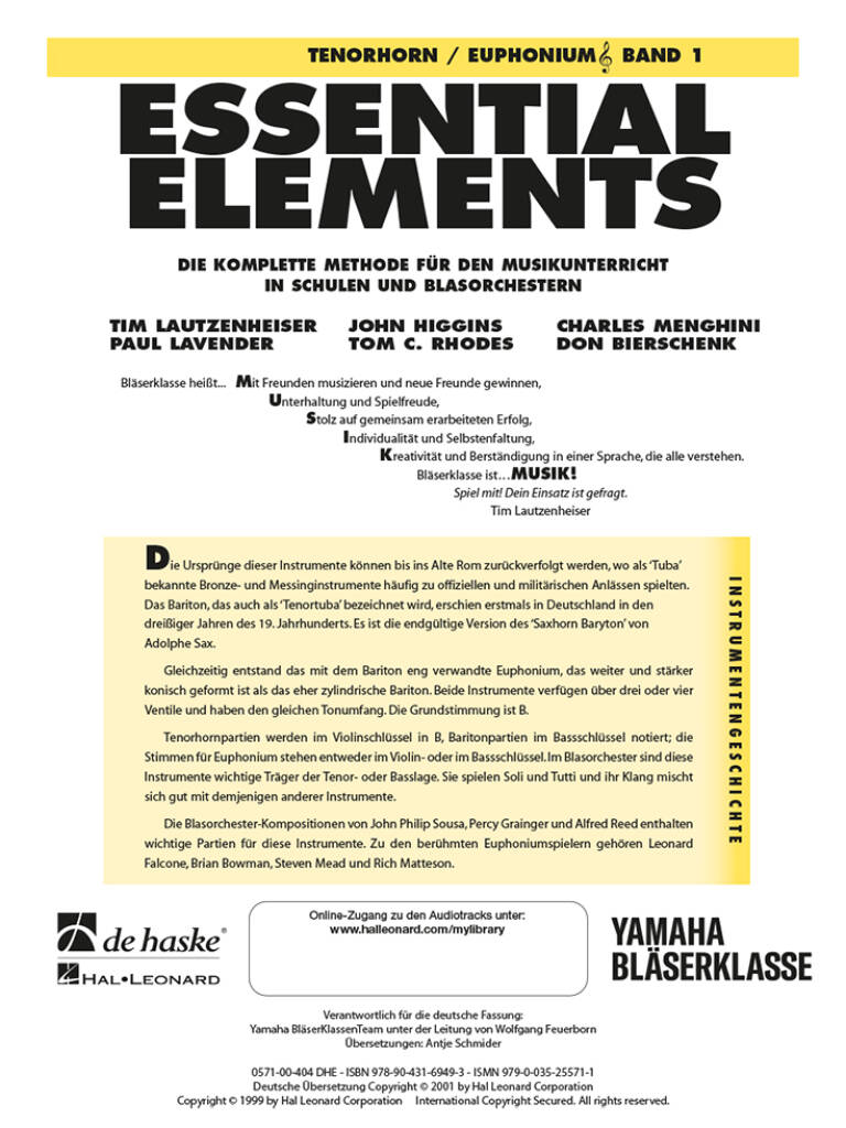 Mit "Essential Elements für Tenorhorn" erlernen Schüler nicht nur ein Instrument, sondern auch wichtige soziale Kompetenzen wie Teamfähigkeit und gegenseitige Rücksichtnahme. Legen Sie jetzt den Grundstein für eine langanhaltende Begeisterung für die Musik