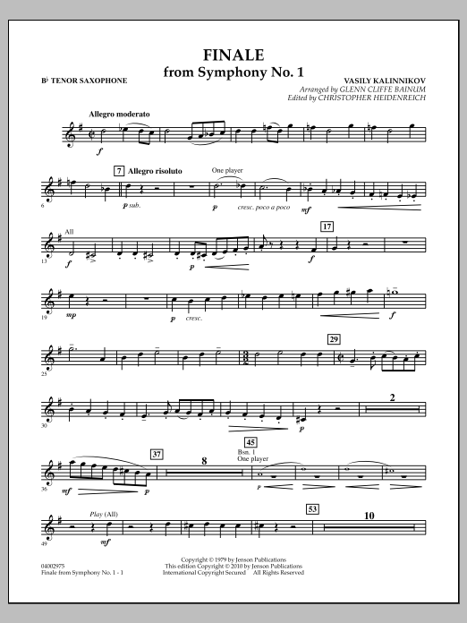 The skillful transcriptions of the late Glenn Cliffe Bainum have proven to be a standard by which others are measured. This transcription is one of Mr. Bainum's most monumental works. Basile Kalinnikov, a contemporary of Tchaikovsky, died prematurely at 35 just as he was establishing himself as one of the great Russian composers. Originally published in 1958, this new edition features a revised full score and parts for optional antiphonal brass choirs.