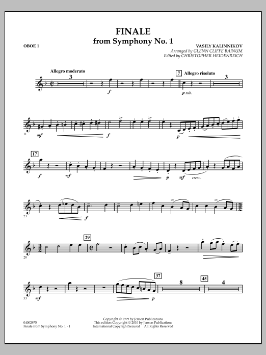 The skillful transcriptions of the late Glenn Cliffe Bainum have proven to be a standard by which others are measured. This transcription is one of Mr. Bainum's most monumental works. Basile Kalinnikov, a contemporary of Tchaikovsky, died prematurely at 35 just as he was establishing himself as one of the great Russian composers. Originally published in 1958, this new edition features a revised full score and parts for optional antiphonal brass choirs.