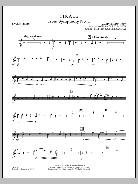The skillful transcriptions of the late Glenn Cliffe Bainum have proven to be a standard by which others are measured. This transcription is one of Mr. Bainum's most monumental works. Basile Kalinnikov, a contemporary of Tchaikovsky, died prematurely at 35 just as he was establishing himself as one of the great Russian composers. Originally published in 1958, this new edition features a revised full score and parts for optional antiphonal brass choirs.