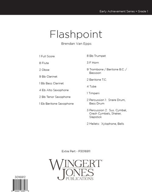 Dieses hochenergetische Werk für Anfänger und Nachwuchsbands fängt die Explosivität eines Flammpunkts ein, also die Temperatur, bei der sich brennbare Dämpfe entzünden, wenn sie einer Flamme ausgesetzt werden. Die Schüler haben die Möglichkeit, an Artikulation und Dynamik zu arbeiten, während junge Schlagzeuger viele interessante und ansprechende Teile haben, die ihr Interesse wecken. Ein echtes Highlight für die Erstsemesterprogramme.