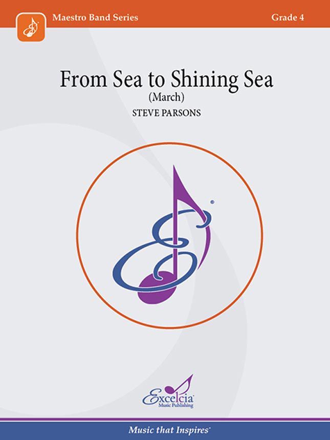 This 6/8 concert march by Steve Parsons is fresh and dynamic. Bursting with excitement, From Sea to Shining Sea is a great concert opener or closer.