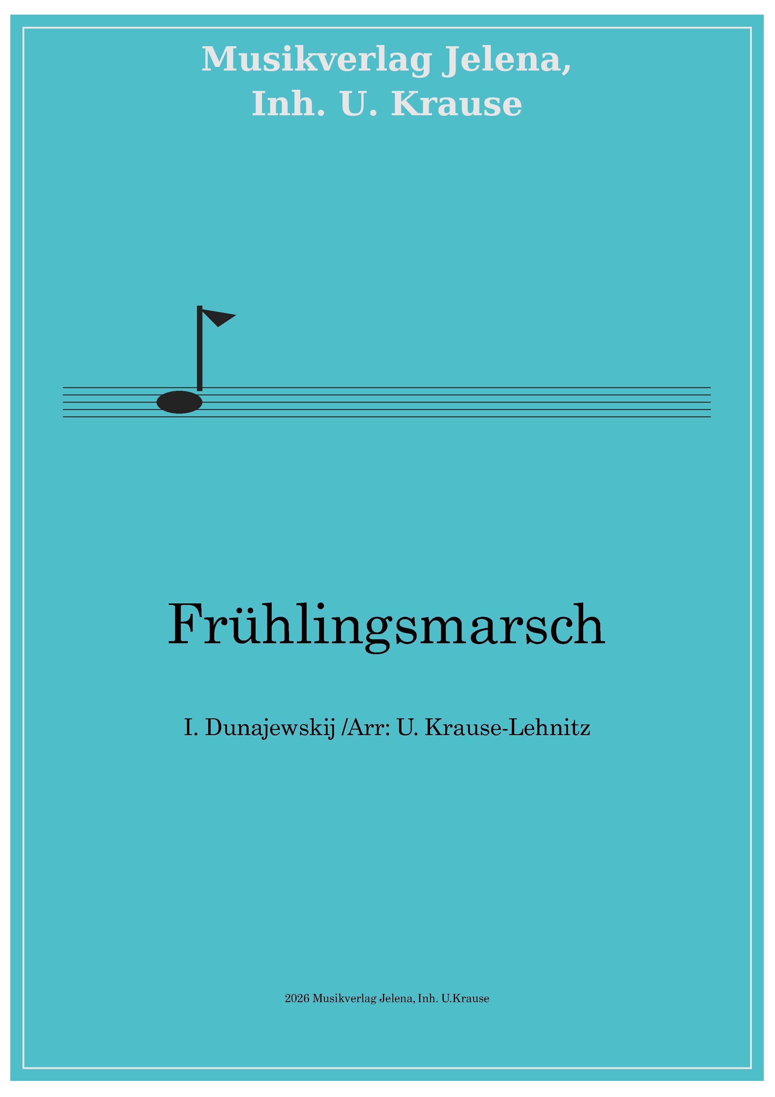 Ein humorvoller und lebensfroher Marsch von Dunajewskij in der neuen Bearbeitung von Uwe Krause-Lehnitz für sinfonisches Blasorchester, Schwierigkeitsgrad 3, Dauer 03:00, Besetzung komplett.