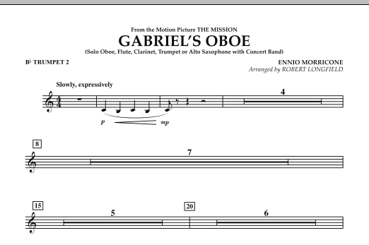 Der Oscar-Preisträger Ennio Morricone hat Hollywood mit einigen seiner monumentalen Filmmusiken versorgt, darunter die fesselnde Musik aus "The Mission". Diese schöne und flexible Vertonung für Solist und Band kann mit Oboe, Flöte, Klarinette, Trompete oder Altsaxophon gespielt werden.