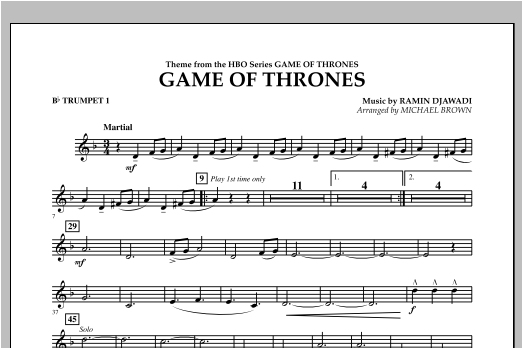 Das düstere und dramatische Thema aus der beliebten HBO-Serie 'Game of Thrones' ist eines der markantesten und wirkungsvollsten Themen für TV oder Film, die in den letzten Jahren entstanden sind. Kraftvoll für junge Bands arrangiert, wird dies sicher ein Hit bei Ihren Schülern sein.