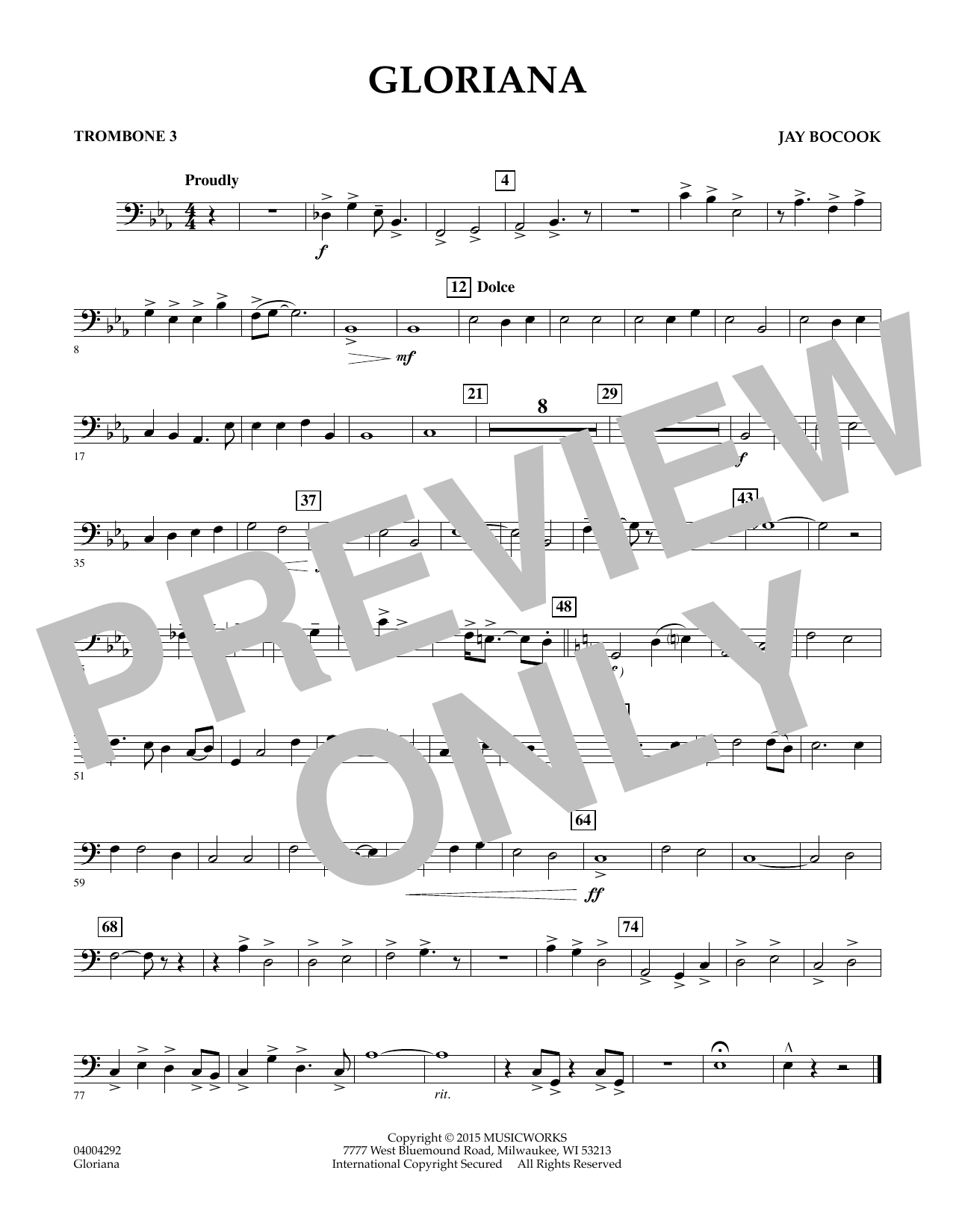 Gloriana' basiert auf dem englischen Gedicht'The Faerie Queene' von Edmund Spenser. Jay Bocooks Werk für sinfonisches Blasorchester besitzt einen königlichen Charakter mit dahingleitenden Melodien und fanfarenartigen Figuren der Blächbläser. Die optionale Orgelstimme erweitert das Klangerlebnis enorm.